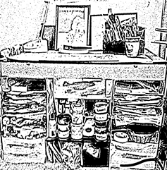 A few hours later, hefty boxes from a closet, leftover boards from a discarded desk, paint and my imagination had built working art table with storage.